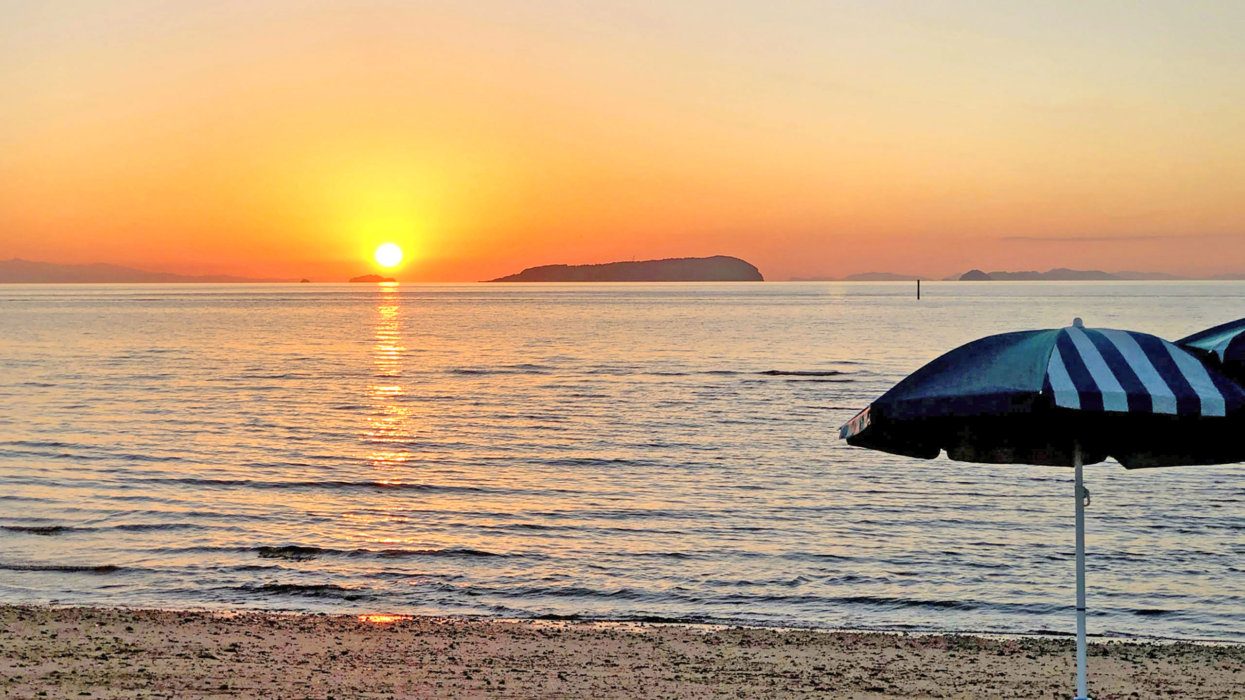 Ariakehama is a shallow beach in the Seto Inland Sea. The sandy beach was once called “the best beach in the East” and is still crowded with many bathers. The beach is included in the Seto Inland Sea National Park and has been selected as one of the “100 best beaches in Japan” and “100 best white sands and green pines in Japan,” and the sight of the setting sun setting over Hiuchinada is breathtaking. They are designated as a cultural asset by the city and delight visitors with their pretty flowers from spring to fall. In recent years, it has also attracted attention as a beach where the “Asagimadara” (butterfly), which is said to be mysterious, flies.