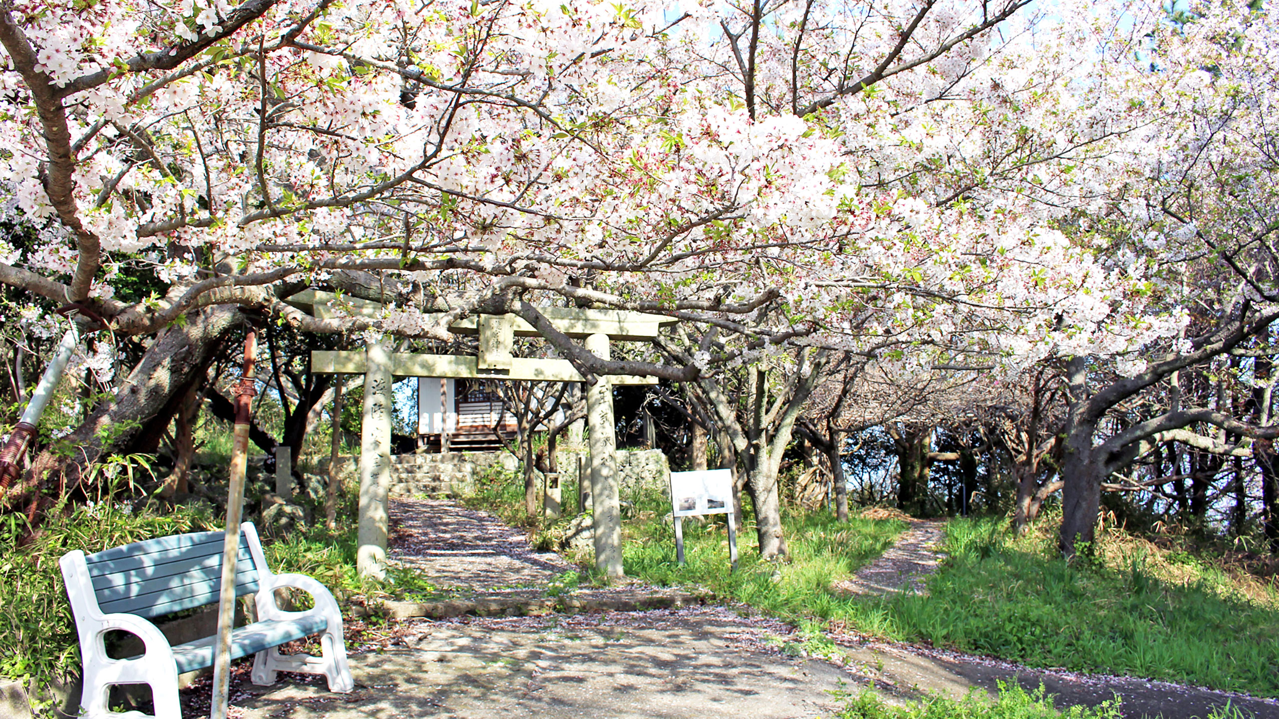 The Namikiri Fudoson, located in the northwest of Ibukijima, is affectionately called “Fudosan” by the islanders, and a cherry blossom festival is held in early April.