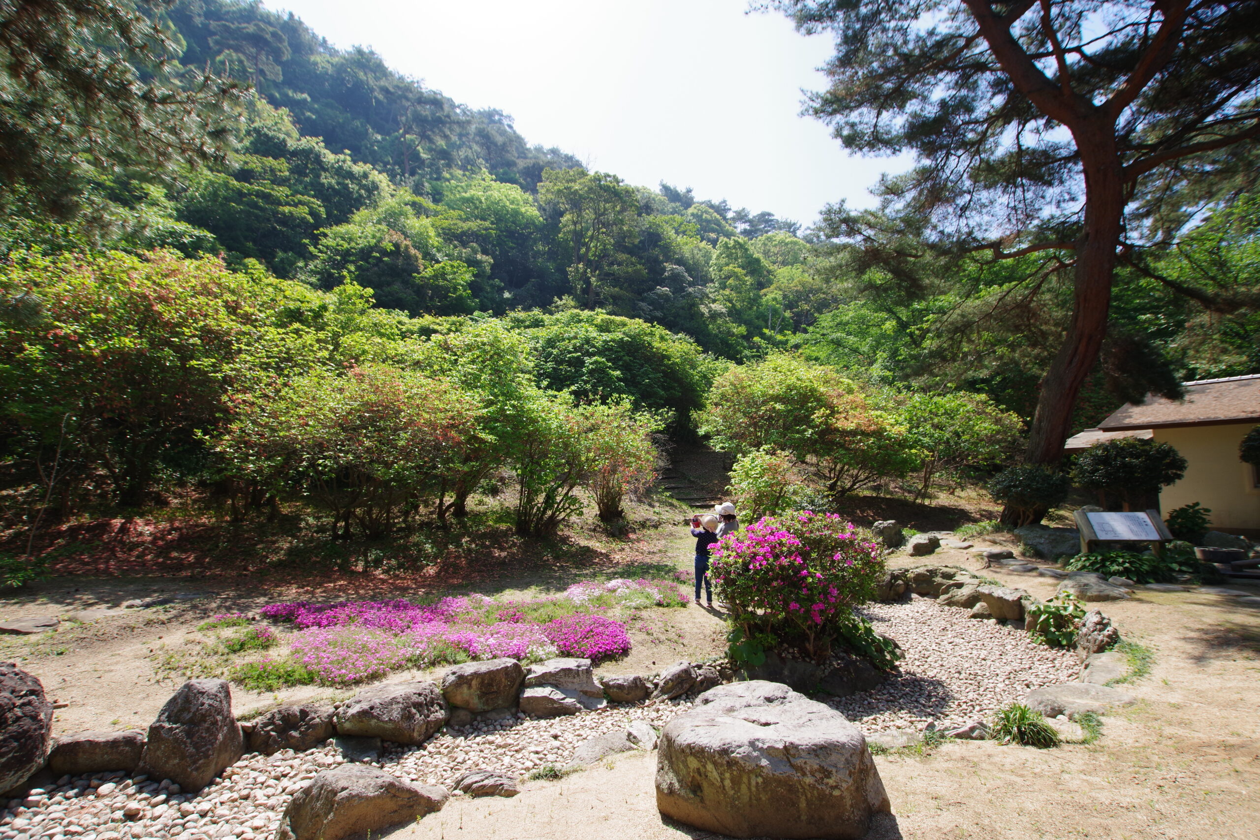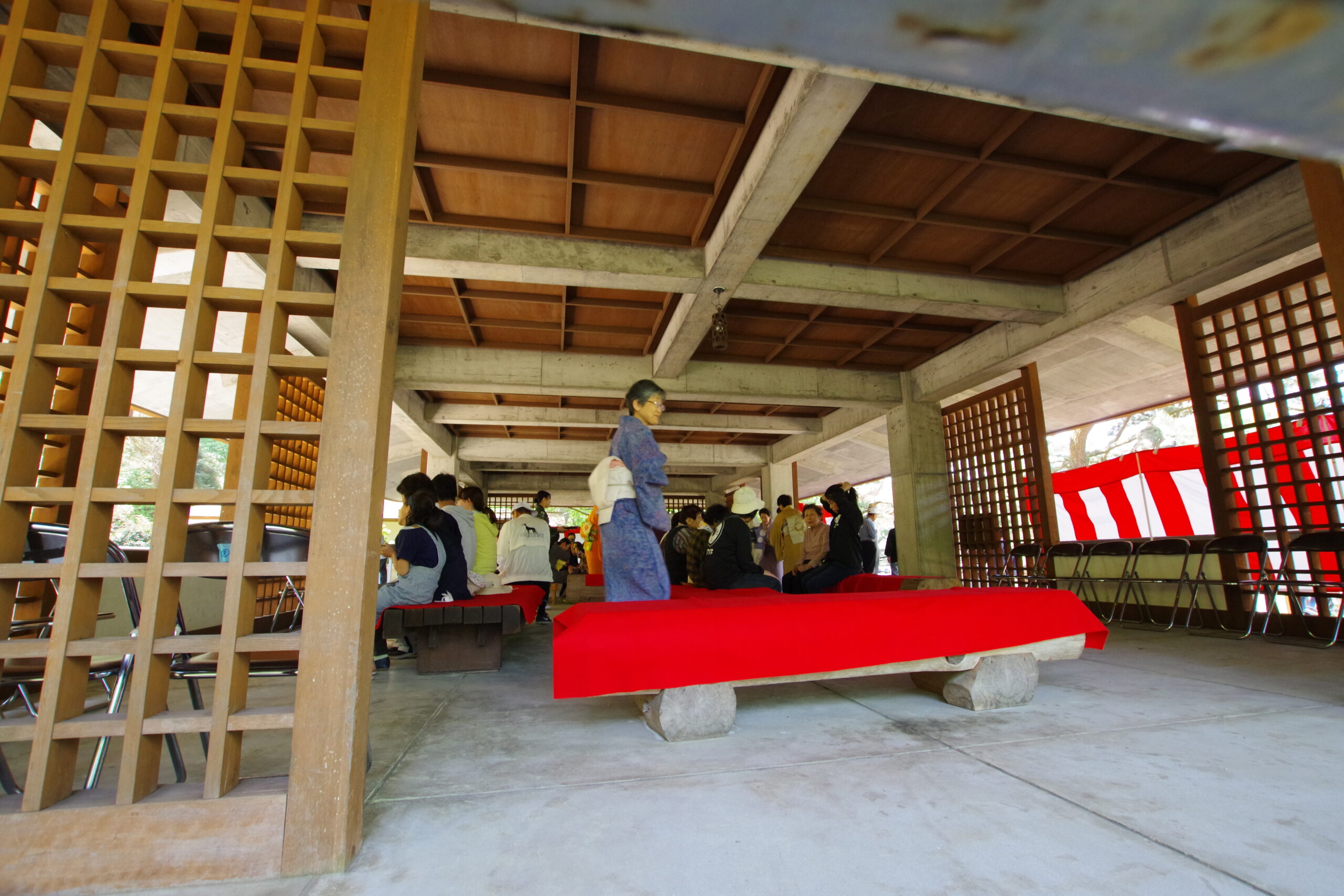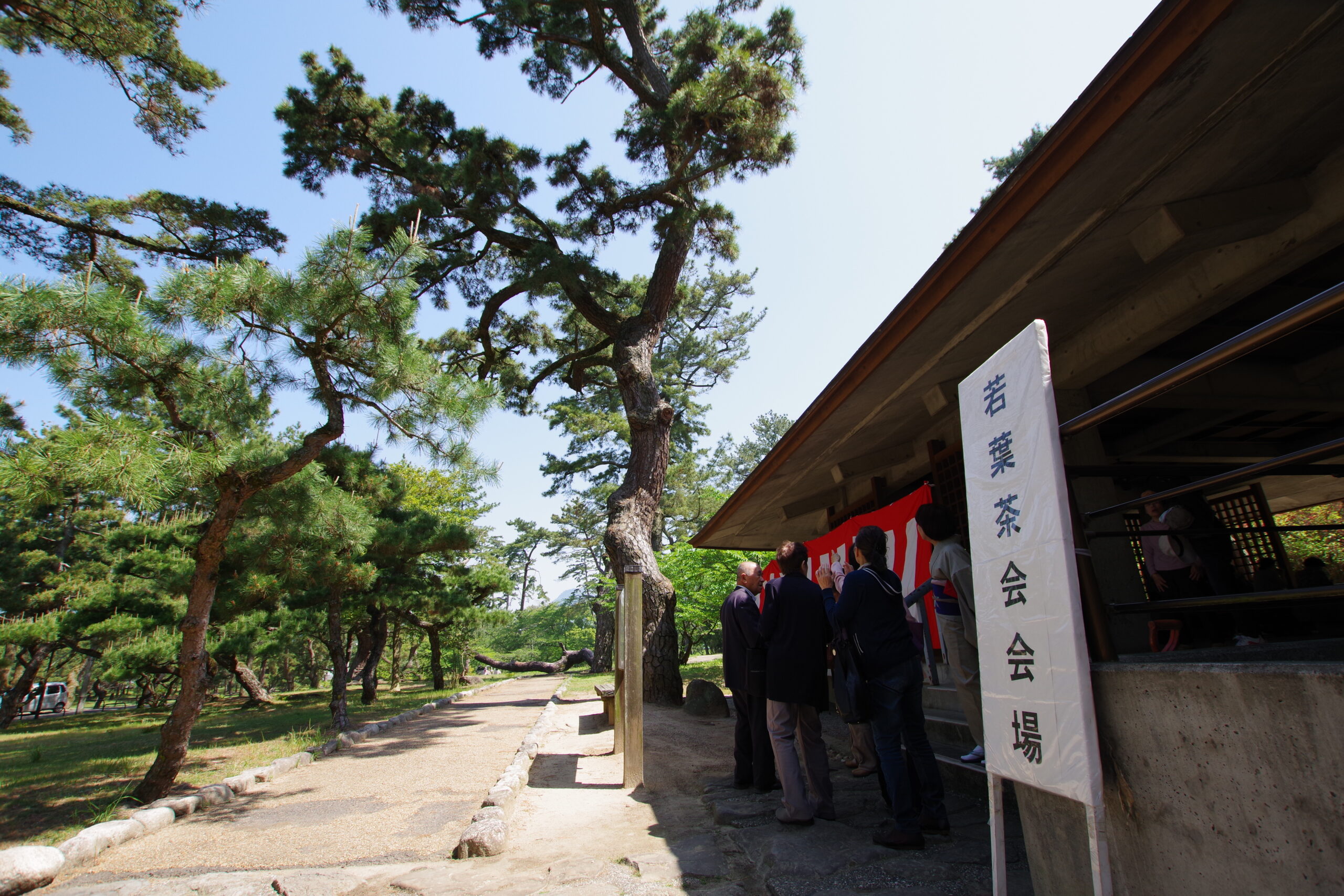 観音寺市の代表的な観光名所である「銭形砂絵」の春季砂ざらえに合わせて、水琴窟やヤマツツジのある琴弾公園浴日館休憩所でお抹茶の接待を行います。砂ざらえに参加される方や一般観光客の方々を対象に、新緑に囲まれて一服のお茶とお茶菓子のお接待で憩いのひと時を過ごしていただきます。