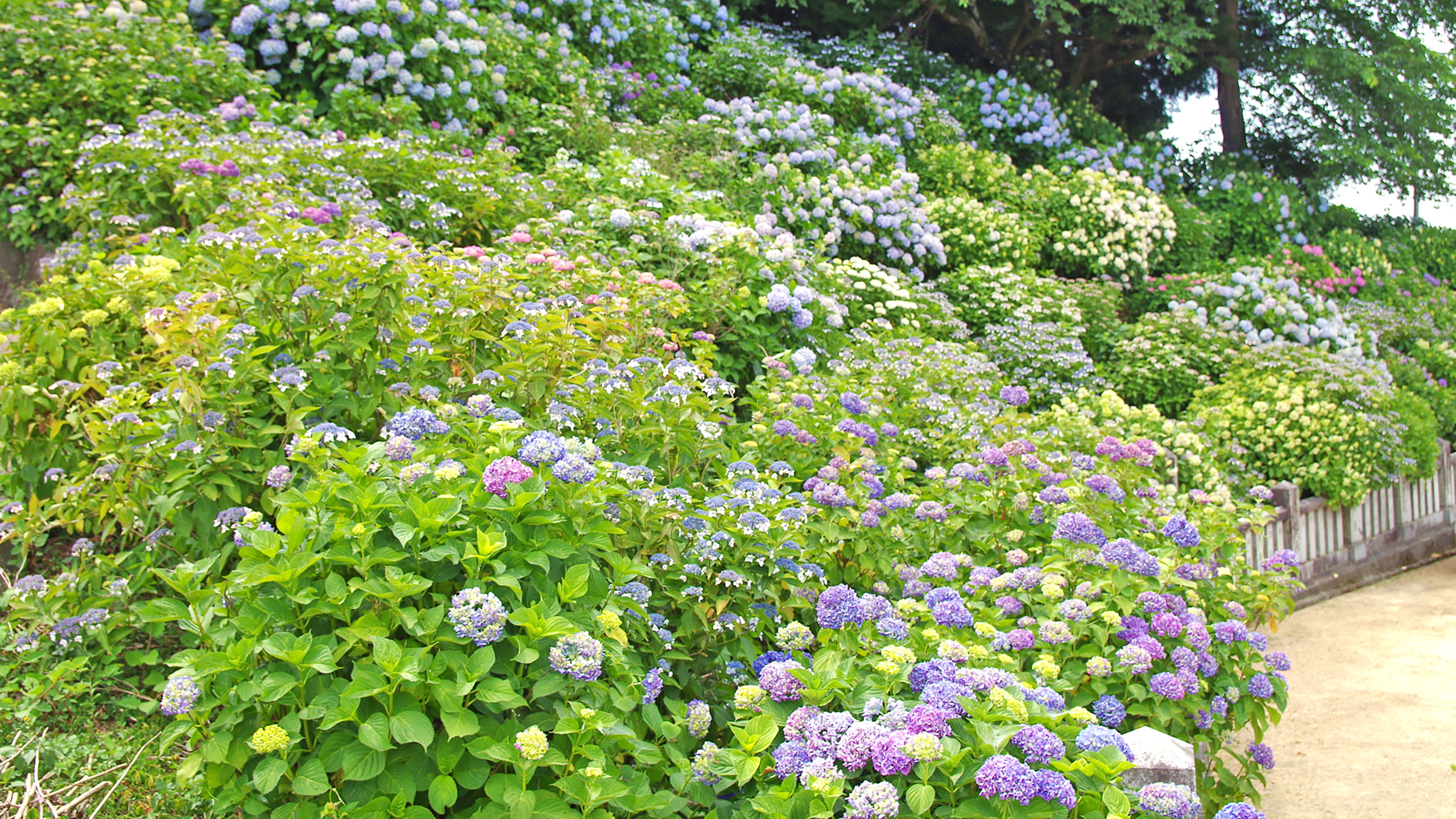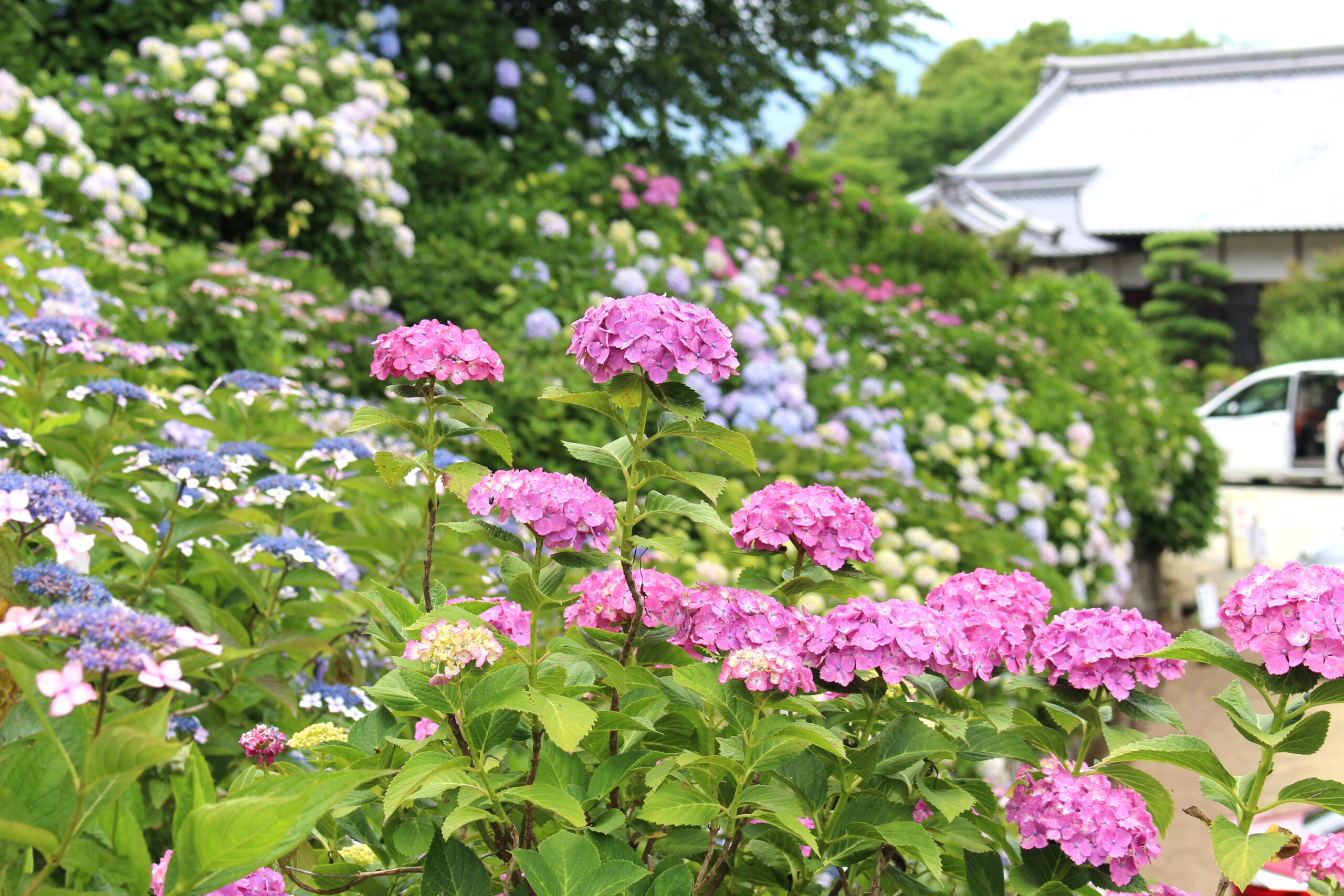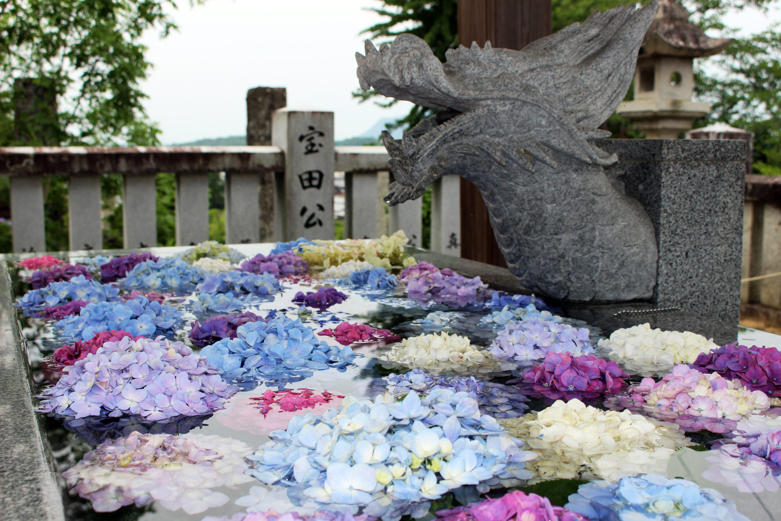 Around 1985, the Awai Community Association and the City Event Council began planting hydrangeas, and today, some 50 varieties and 3,000 hydrangeas are in full bloom from June to July. For this reason, Awai Shrine is also known as “Hydrangea Shrine” or “Hydrangea Temple”. The “Hydrangea Festival” is held every June, and many people enjoy the colorful blue, purple, pink and other flowers of hydrangeas on the shrine grounds and on the slopes of the hill behind the shrine.