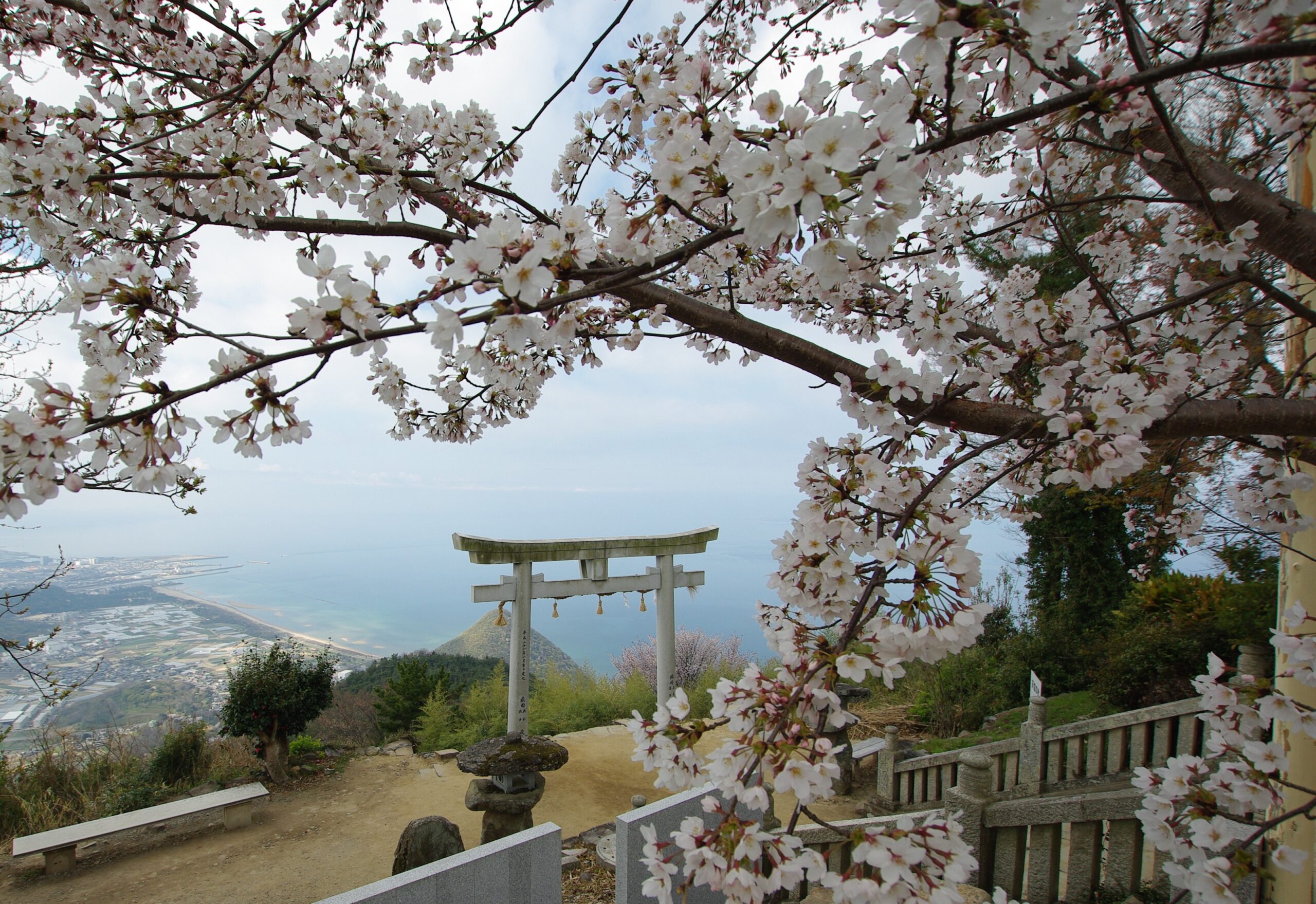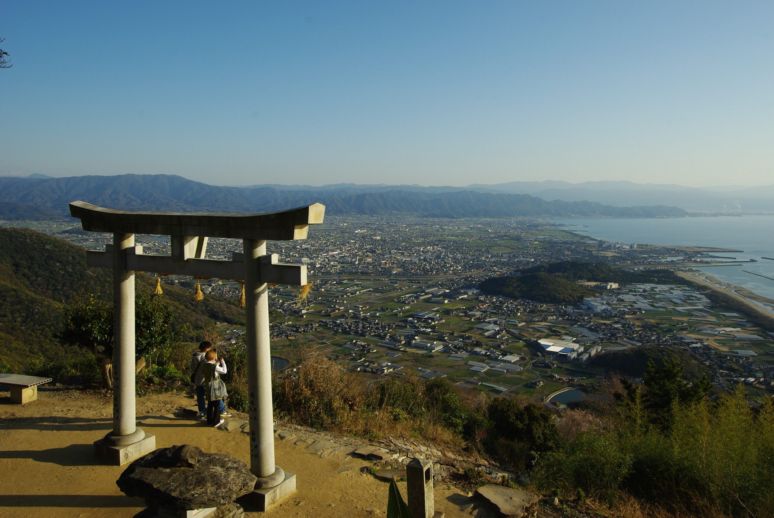 Takaya Shrine is one of the 24 shrines in the Engi-shiki of Sanuki Province. The main shrine, originally located at the top of Mt. Inazumi, was moved to the foot of the mountain, but was later re-constructed on the summit. It is also called Inazumi Shrine (Inazumi-san), from the name of the mountain, and has long been popular as the god of rice. The 404-meter-high summit commands a panoramic view of Kannonji City, with the vast Hiuchinada Seto Inland Sea and Ariake Beach stretching out below. If the weather is fine, even Mt. Ishizuchi can be seen from the summit, making it an excellent view spot. From the Shimogu, the village shrine, to the main shrine, there are 270 steep and wide stone steps at the end, and in the middle of the steps sits a rock called Yurugiishi, which does not fall even when pushed with a finger.