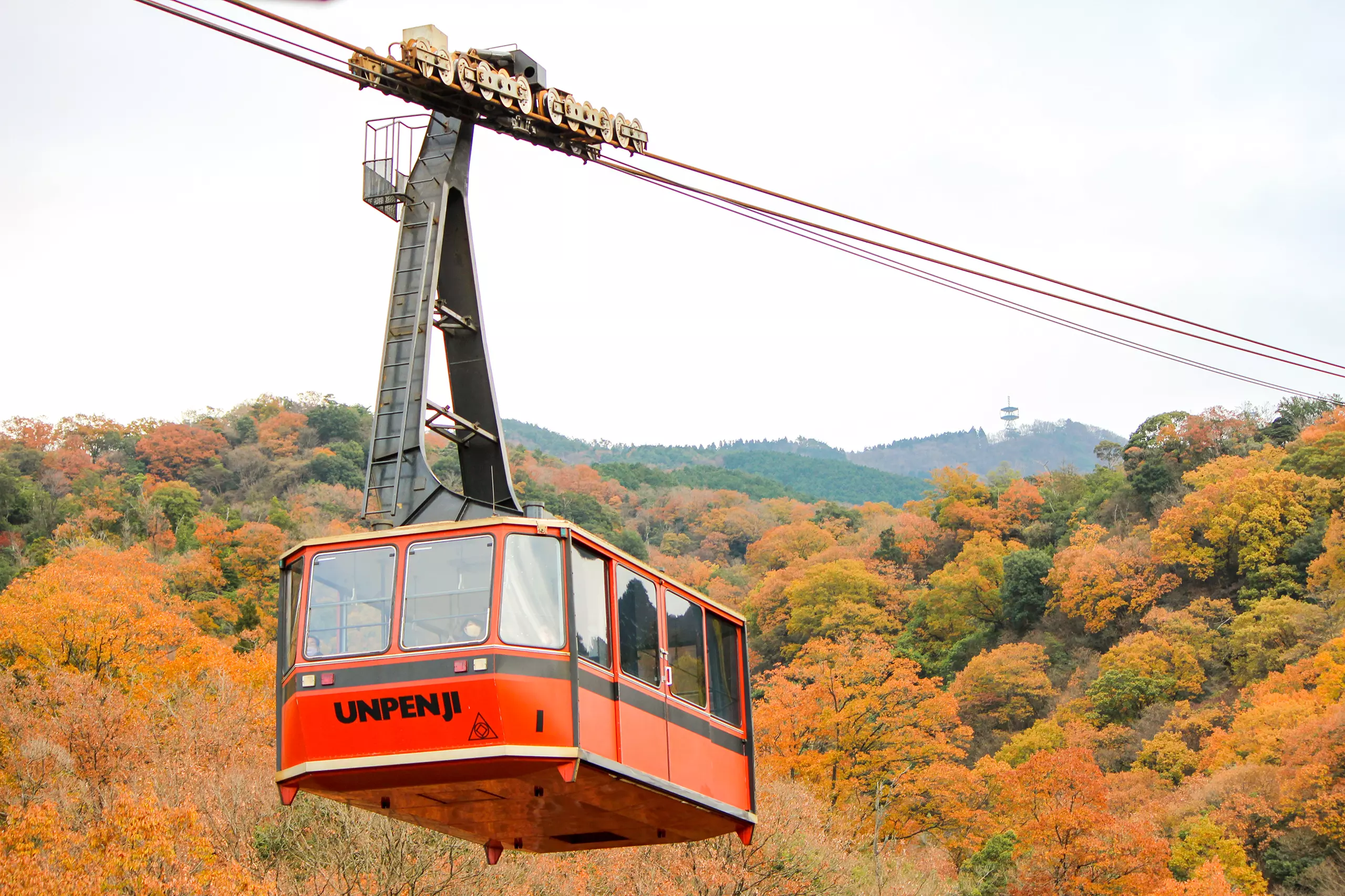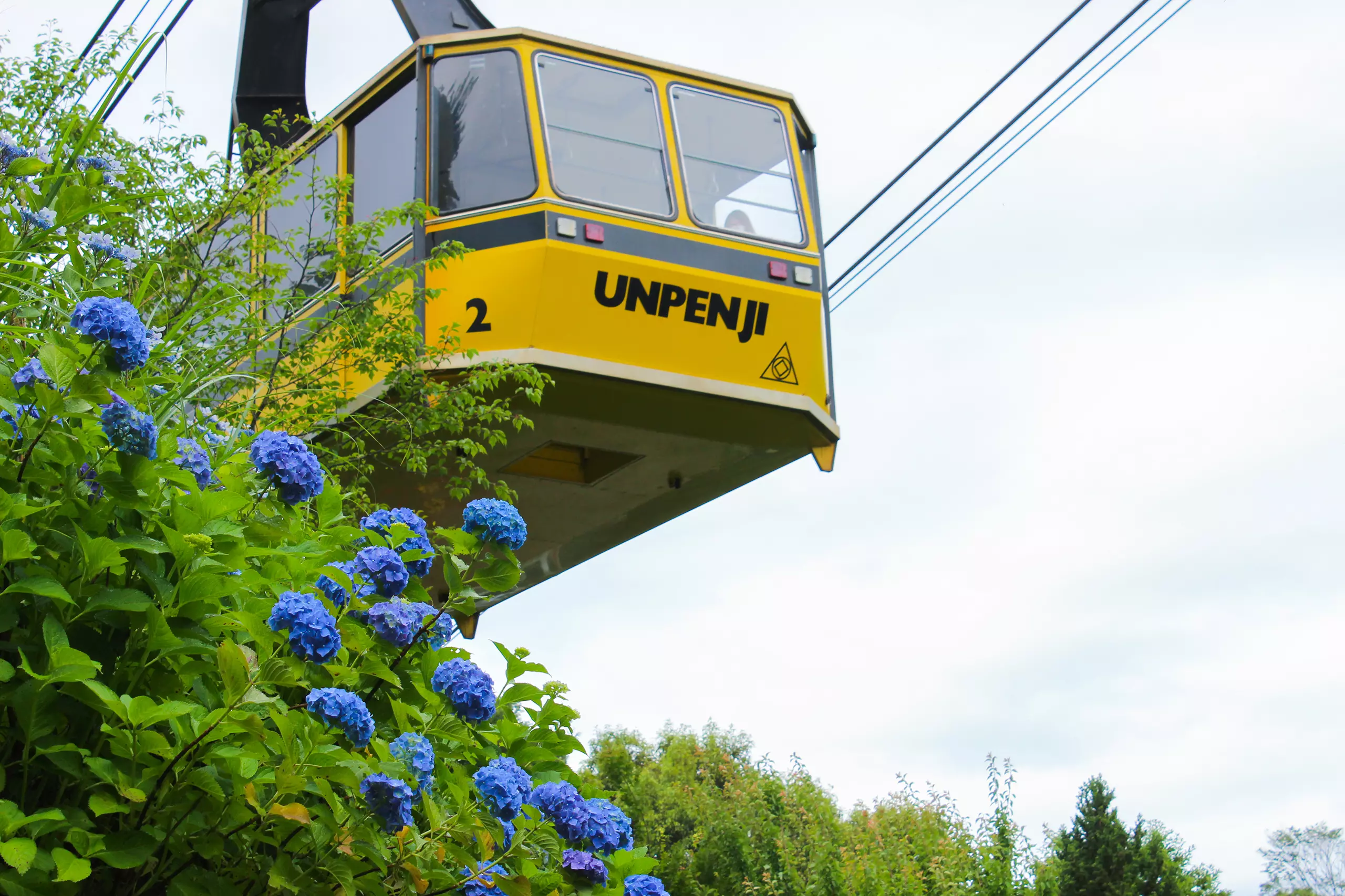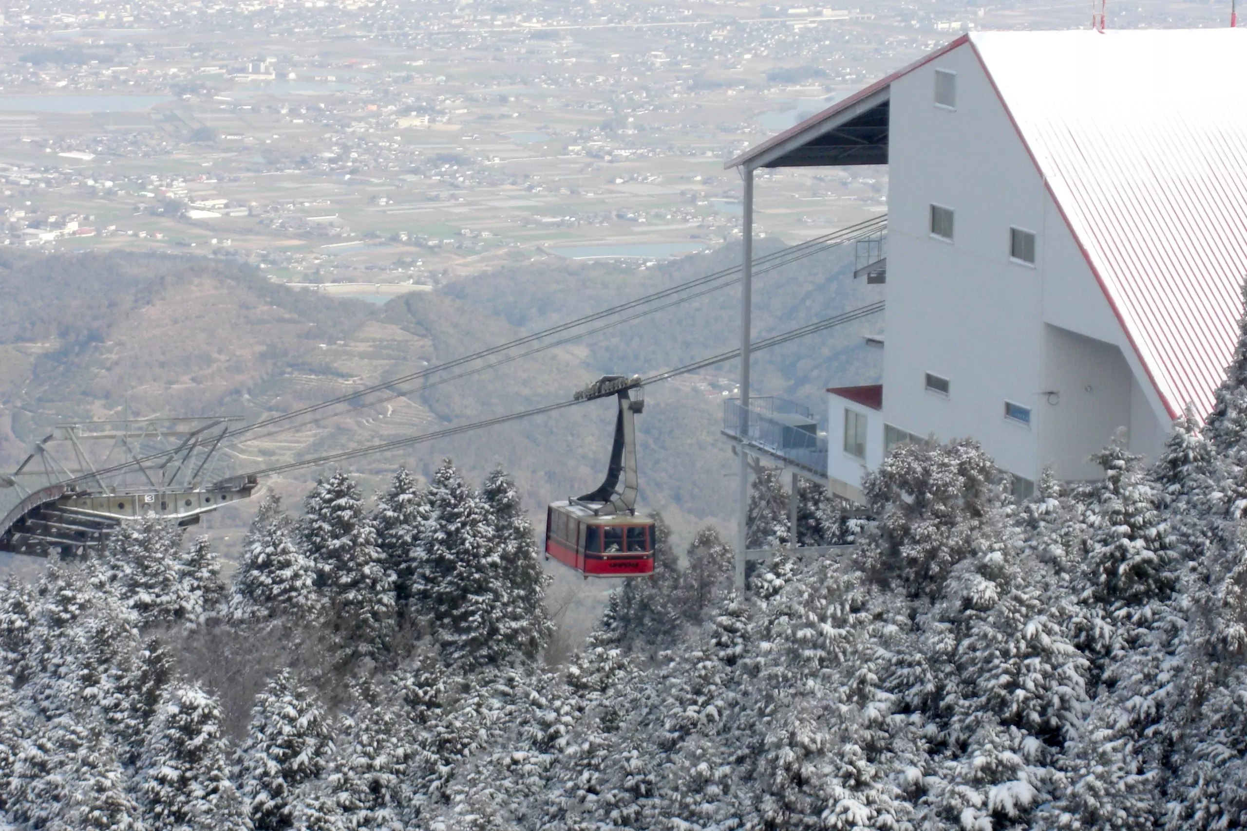 The ropeway is one of the largest ropeways in Japan, with a total length of 2,594 meters and a height difference of 657 meters to the summit station at an elevation of 916 meters, operating at a maximum speed of 36 km/h. It has a capacity of 101 passengers!