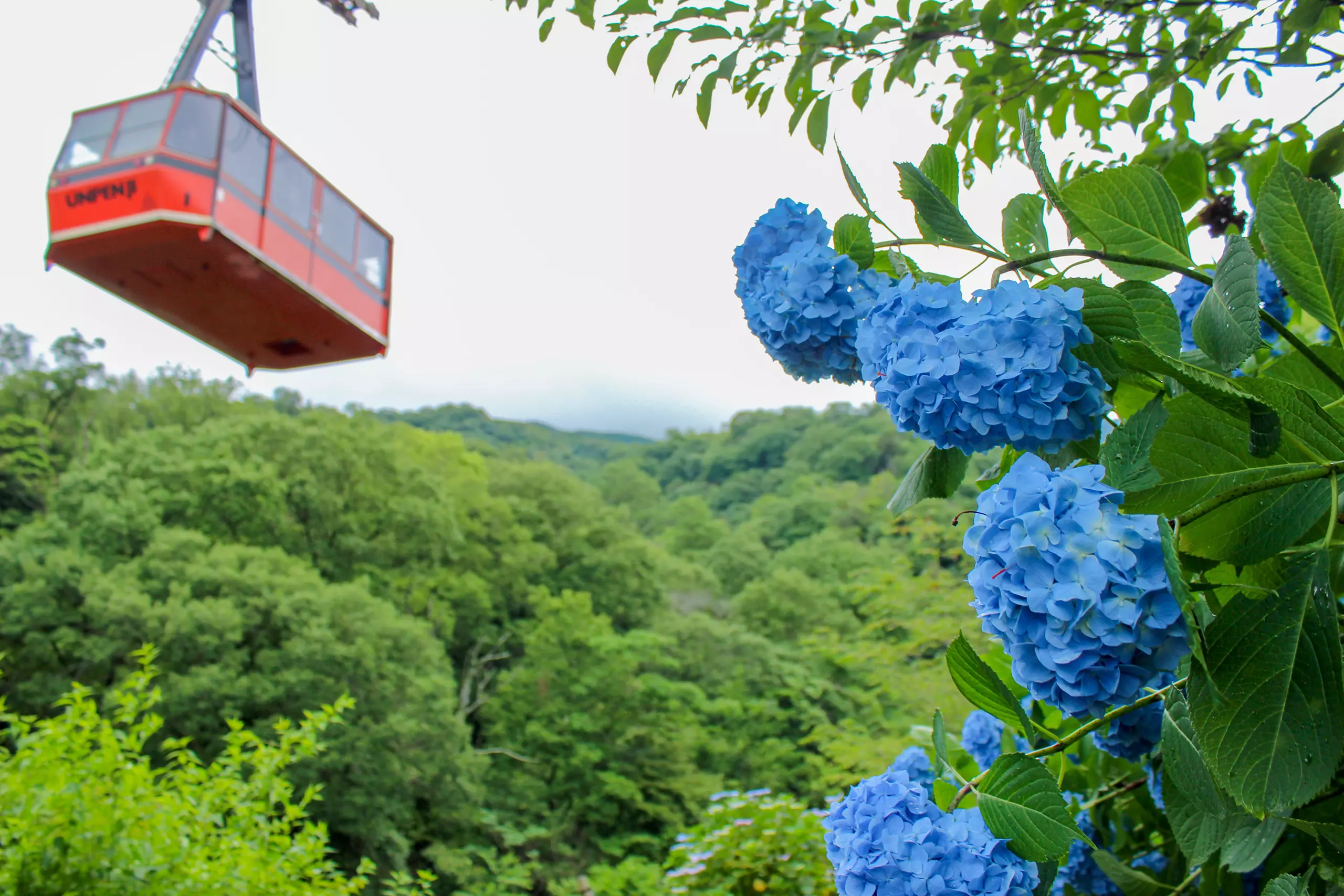 The park also offers seasonal views of mountain cherry blossoms in spring, hydrangea in summer, autumn leaves in fall, and snowy scenery in winter.