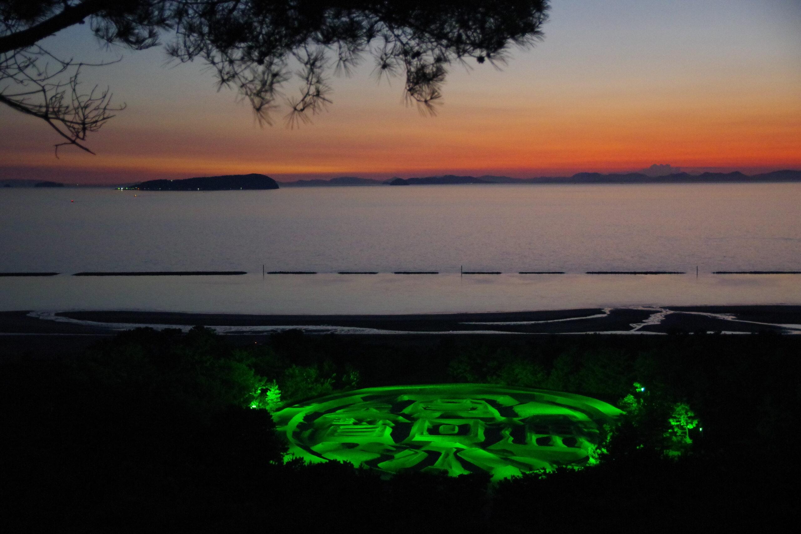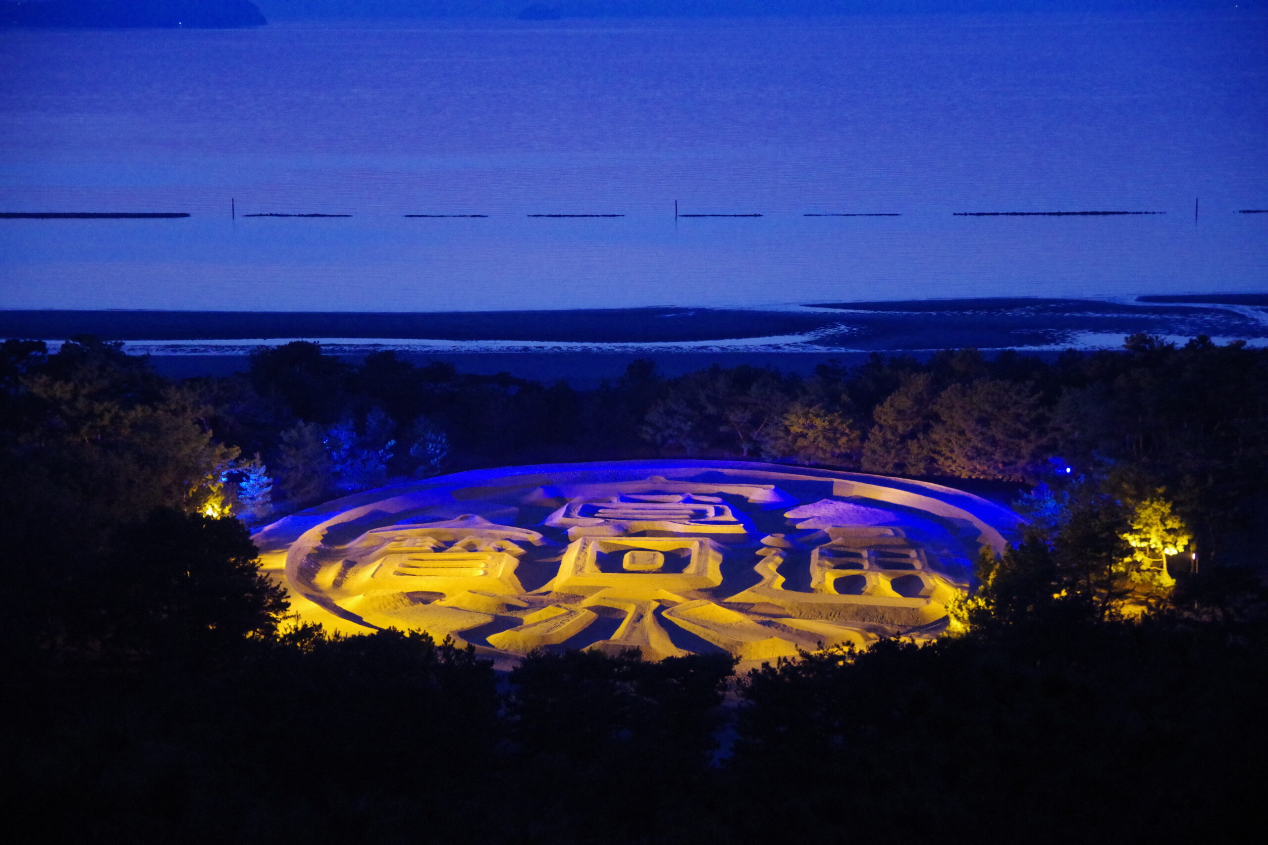 The “Kanei Tsuho” coin-shaped sand painting on Ariake Beach is a huge sand painting measuring 122 m east to west, 90 m north to south, and 345 m in circumference, and looks beautifully circular when viewed from the top of Mt. It is said to have been made overnight in 1633 to welcome the lord of the domain, Takatoshi Ikoma, and is unique in its kind. It is said that those who see the Zenigata will live a long and healthy life and will never be short of money. In recent years, people who have seen the Zenigata and purchased lottery tickets have won large sums of money, making it known as a money-making spot and attracting many tourists. It is also used in the title background of the TV show Heiji Zenigata.